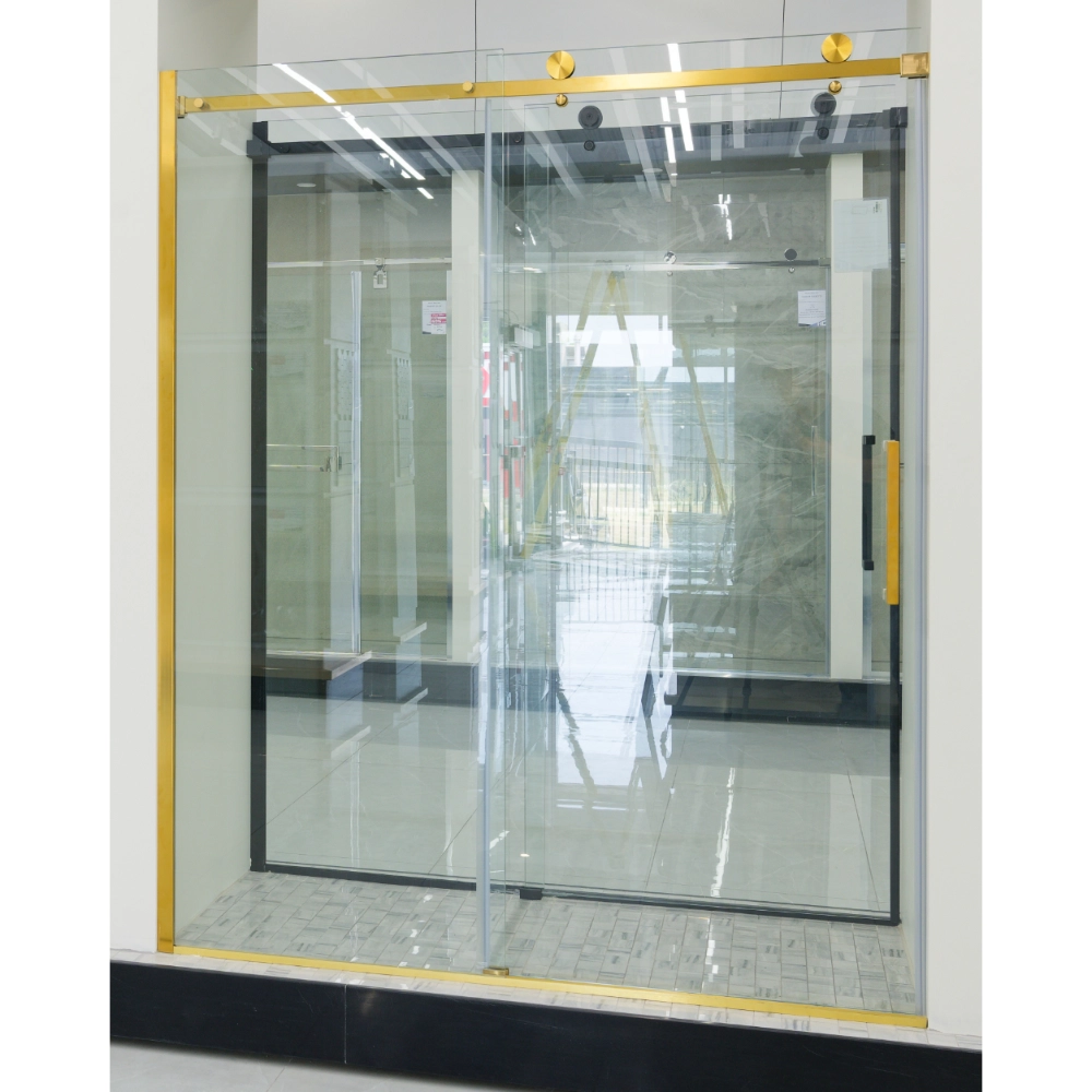 Size: 59″ x 72″ Finish: Brushed Gold Glass Thickness: 8mm | Tempered Glass I Stainless Steel